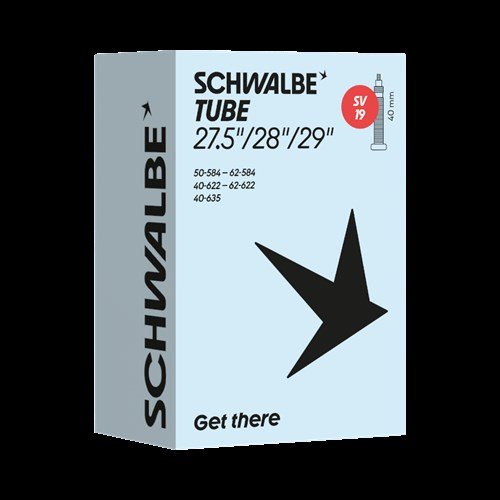 Schwalbe binnenband Standaard 28×1.75 Frans – SV19/50-584, 60-584, 62-584, 40-622, 47-622, 50-622, 57-622, 62-622, 40-635. De Schwalbe binnenbanden zijn betrouwbaar. Fietsdetaillisten waarderen hem om zijn hoge betrouwbaarheid. Iedere band wordt in de fabriek opgepompt en zo 24 uur op luchtdichtheid getest. De band houdt de luchtdruk langer vast. In de productie vereist Schwalbe een zeer hoog butyl aandeel en een zeer hoge reinheid van het materiaal. Zo houdt de Schwalbe binnenband de luchtdruk beduidend langer vast dan andere binnenbanden. Het is een groepen-binnenbandsysteem: Een Schwalbe binnenband is extreem elastisch en past op meerdere bandafmetingen. Hierdoor worden ze groepen binnenbanden genoemd. Zo past bijvoorbeeld de binnenband met nummer 19A voor bandafmeting van 27.5 inch tot 29 Inch en voor de breedte van 40 tot 62mm. Als laatste is de band 100% volledig recyclebaar. Standaarduitvoering: Hoge betrouwbaarheid, al vele jaren beproefd.
