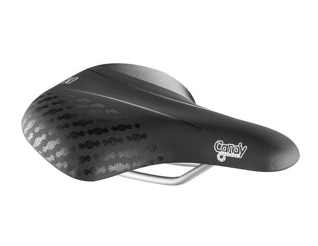 Candy is een zadel dat geschikt is voor meisjesfietsen met wielen van 16, 20 of 24. Het zadel is opgevuld met een schuimmatrix en versierd met een minimalistisch ton sur ton design. De open celstructuur van de schuimmatrix zorgt voor een hogere elasticiteit en een beter ademend vermogen. Hierdoor ontstaat een onverslijtbaar en comfortabel zadel. Het gepatenteerde clip systeem aan de achterkant van het zadel maakt het heel gemakkelijk om een Selle Royal zadeltasje of ander accessoire aan te brengen.