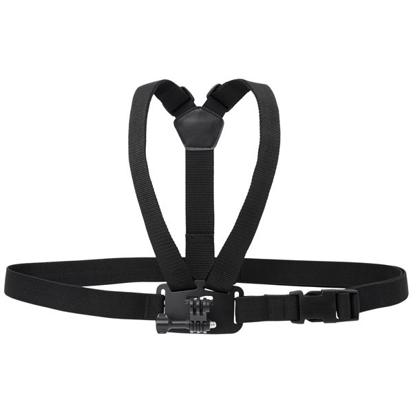 Wilt u beide handen vrij hebben tijdens het filmen en zit de cap bevestiging te hoog? Dan is er de borstbevestiging van Shimano een mooie oplossing, met een flexibel harnas kunt u de camera op borsthoogte bevestigen.