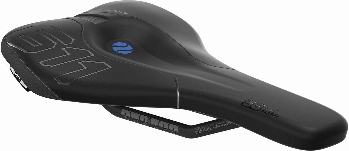 De voor het gewicht geoptimaliseerde 611 Ergowave active Carbon is precies afgestemd op de behoeften van off-road gebruik en geperfectioneerd om aan de eisen van alle berg- en en endurorijden te voldoen. Met 225 g is de 611 Ergowave Active Carbon het lichtste model 611 Ergowave met geïntegreerde Active Technology. De golvende vorm van het zadel en de verhoogde achterkant van het zadel zorgen voor een perfecte ondersteuning van de achterkant en een optimale drukverdeling tot in de diepe structuren van het lichaam, wat de krachtoverbrenging naar het pedaal aanzienlijk verbetert. In combinatie met de uitsparing in het midden zorgt de lagere neus voor meer ruimte en ruimte voor de dam.Voor een nog betere drukverlaging, vooral bij langere beklimmingen in het terrein, is de zadelneus van de 611 ca. 4 mm breder dan die van de 612, maar is net zo vlak en met een zo groot mogelijk contactoppervlak uitgevoerd. Het bekledingsmateriaal is speciaal aangepast aan de eisen van de mountainbike en heeft meer demping in ruw terrein dan de 612 Ergowave-modellen. Hoogwaardige Kevlar-hoes beschermt de bijzonder belaste plaatsen op het zadel. De SQlab Active zadeltechnologie stelt het zadel in staat om de trapbeweging te volgen, waardoor het comfort toeneemt, de tussenwervelschijven worden gemobiliseerd en de druk op de zitbeenderen wordt geminimaliseerd.