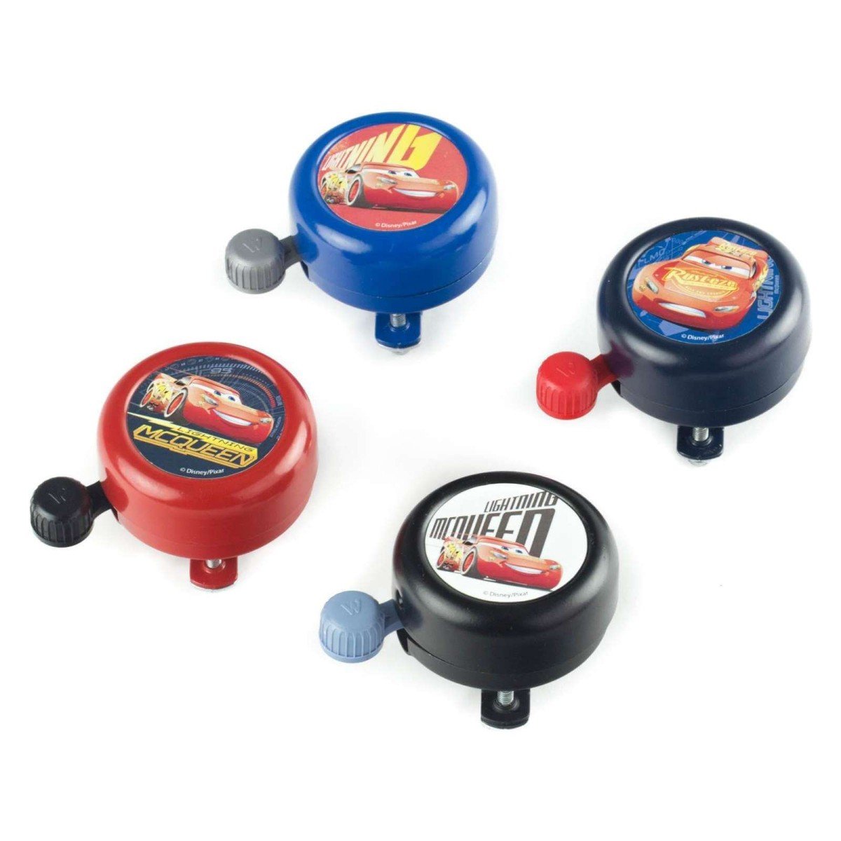 Widek Kinderbel Cars 3 per stuk in een displaydoos, assortiment gelakt in vier kleuren: jeansblauw, hemelsblauw, rood en zwart (doos 12 stuks)